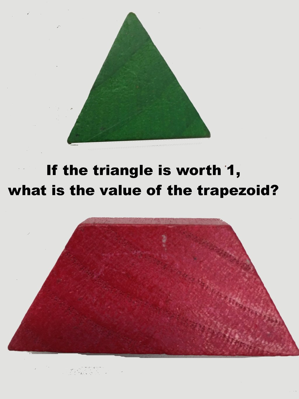 Last week you calculated the value of the trapezoid, knowing the the triangle is 1. The value of the triangle is still 1.